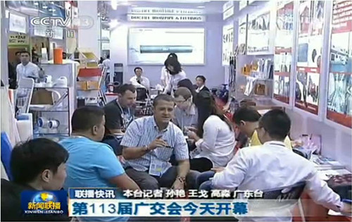 作為世界500強的中國建材集團旗下的物流貿(mào)易版塊的重要企業(yè),中建材國際貿(mào)易參展的主要產(chǎn)品有:型鋼、卷板、不銹鋼、球墨鑄件、吊頂及隔墻、玻纖產(chǎn)品、PE塑料制品、節(jié)能產(chǎn)品。廣交會開幕首日反應熱烈,我司氣勢宏大的展位不僅吸引了眾多的海內(nèi)外客戶,更引起眾多家媒體的廣泛關(guān)注,央視《新聞聯(lián)播》中播出了我司展位的熱烈場面及玻纖產(chǎn)品部同事與客戶的洽談情景。